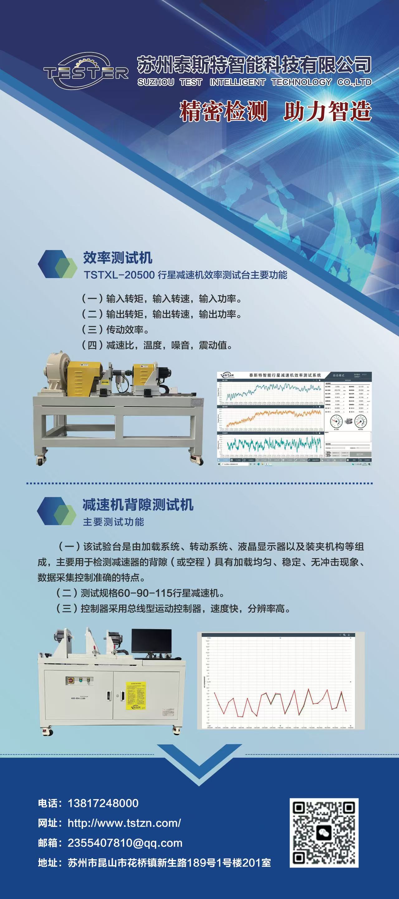 蘇州泰斯特智能科技有限公司以高、新、尖技術(shù)力量為核心,專(zhuān)注研發(fā)、生產(chǎn)、銷(xiāo)售精密行星減速機(jī)背隙測(cè)試機(jī),減速機(jī)測(cè)功機(jī),電機(jī)測(cè)功機(jī),伺服壓力機(jī),RV減速機(jī),諧波減速機(jī)角度傳遞誤差測(cè)試,啟動(dòng)力矩測(cè)試,背隙,剛性測(cè)試,回差測(cè)試,彈簧常數(shù),滯回曲線測(cè)試設(shè)備,排針機(jī)相關(guān)自動(dòng)化設(shè)備的廠家, 本著“專(zhuān)注、只為更好”為核心理念,通過(guò)先進(jìn)的管理手段,將技術(shù)、品質(zhì)工藝改進(jìn),有效的融為一體,為客戶(hù)提供精密、穩(wěn)定、快捷的減速機(jī)檢測(cè)產(chǎn)品及方案。